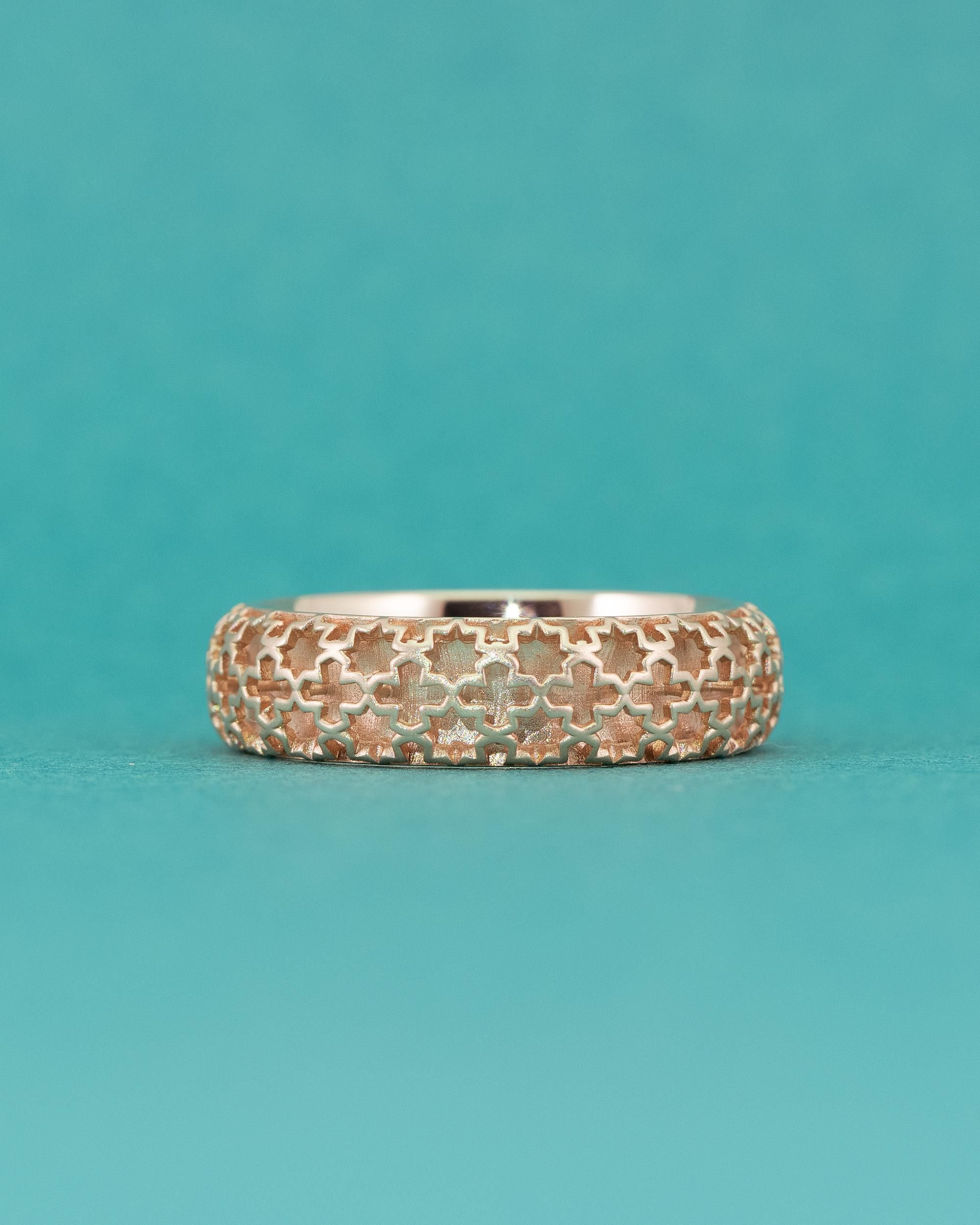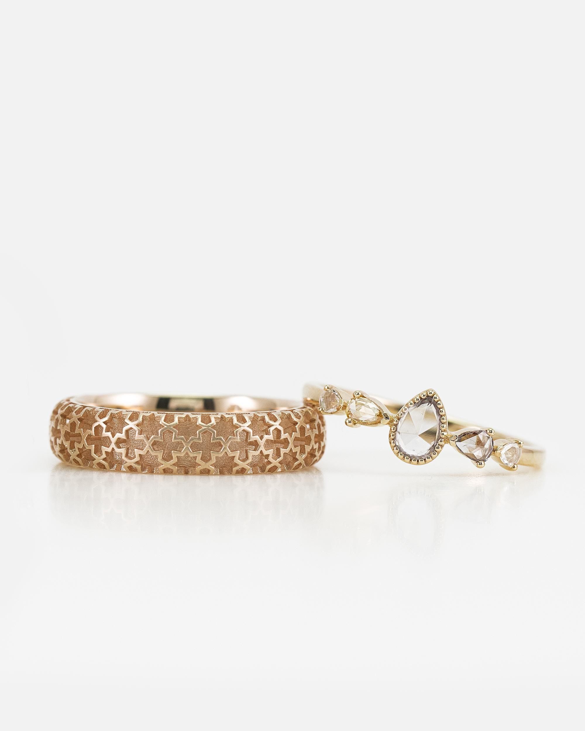 相反する要素が響き合い、1本のリングという小さな世界に、静かなバランスを宿しています。