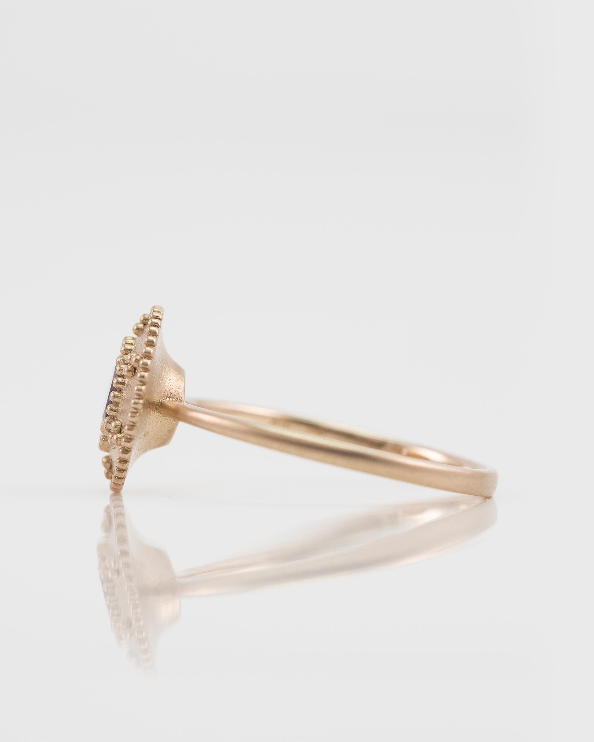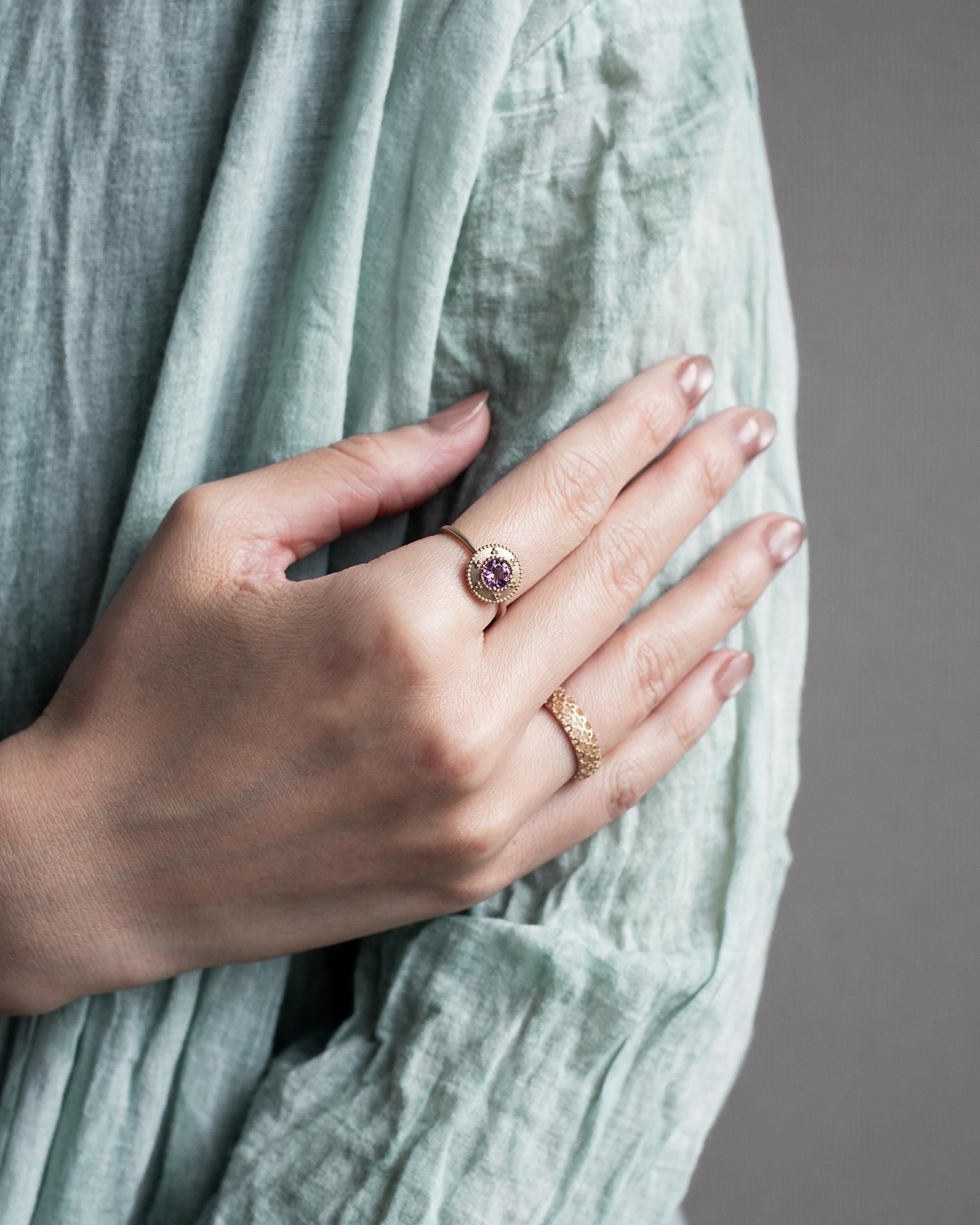 こちらの石はアメジストが持つ気品はそのままに、肌に溶け込むような透明感と、ほんのりとした血色感を併せ持っています。